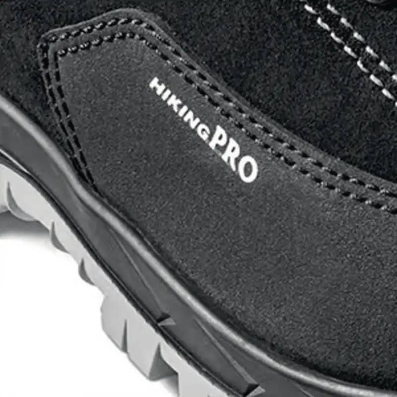 Extra Stark. Hiking PRO Sicherheitsschuhe sind robust, sportlich, sicher. Obermaterial aus weichem Velours-Spalt Rindleder. Mit atmungsaktivem und weichem Nappa Lederfutter und geschlossener Lasche. Durchtrittsichere metallfreie Brandsohle, ergonomische Stahlkappe, extra griffige AirTubeless-Trekkingsohle aus Gummi mit vollflächiger Luftdämpfung, antistatisch, ESD.