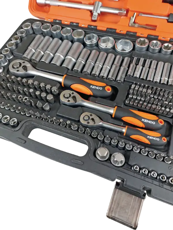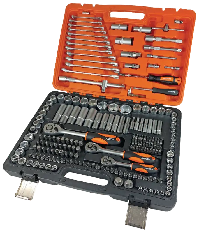 Der 216-teilige Heavy-Duty Steckschlüsselsatz von KENDO ist eine kompromisslose Komplettlösung für Werkstatt und Garage. Mit den drei gängigen Antriebsgrössen 1/2", 3/8" und 1/4" deckt dieses Set nahezu alle Anwendungen ab – von feinen Montagearbeiten bis hin zu kraftvollen Reparaturen im Fahrzeug- und Maschinenbereich.