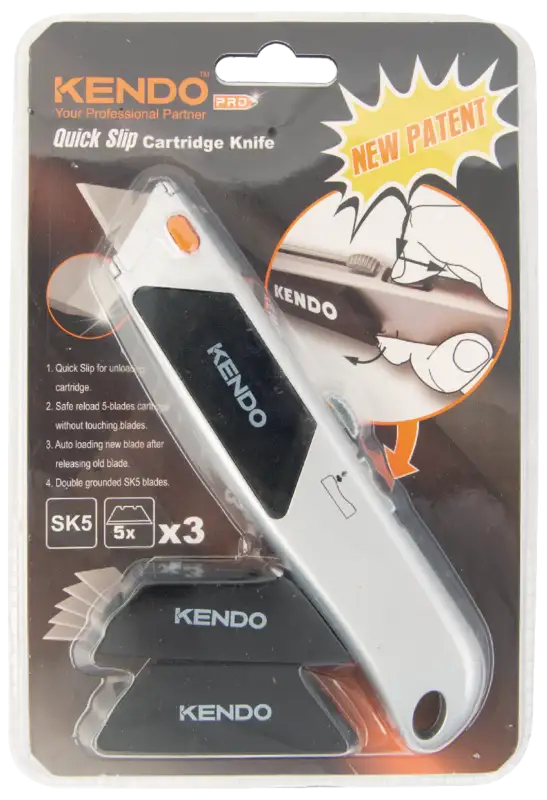 Das KENDO Universalmesser ist Ihr zuverlässiger Begleiter für präzise Schneidarbeiten an unterschiedlichsten Materialien – von Karton über Kunststoff bis hin zu Gipskarton. Die extrem scharfe Klinge aus SK5-Werkzeugstahl überzeugt durch ihre Härte und Elastizität und ermöglicht müheloses, sauberes und präzises Schneiden.