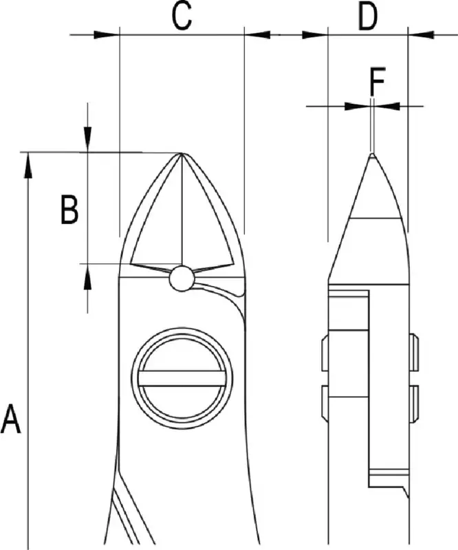 Ovaler Mini-Schneidenkopf, hochwertiger Kugellagerstahl, induktionsgehärtete Schneiden 63 HRC, Anti-Glare, kratzfreies Satin-Finish, ergnonomische Mehrkomponenten-Griffhüllen mit weicher, komfortabler Griffoberfläche, elektrisch ableitend - dissipativ. Doppelblattfedern aus Edelstahl, hohe Präzision und Festigkeit durch ein Überlappungsgelenk mit Schraube. Muttern aus gehärtetem, legiertem Stahl.