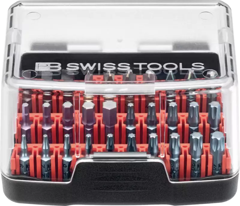 PB PrecisionBits, Form C 6,3 mit Aussensechskant 1/4", Set in praktischer BitBox. Für Schlitz-, Phillips-, Pozidriv-, für Torx®- und Innen-