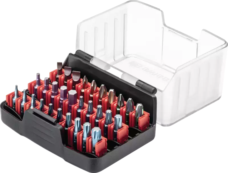 Sechskant-Schrauben. 30 PrecisionBits in drei BitBlocks, mit Magnethalter.