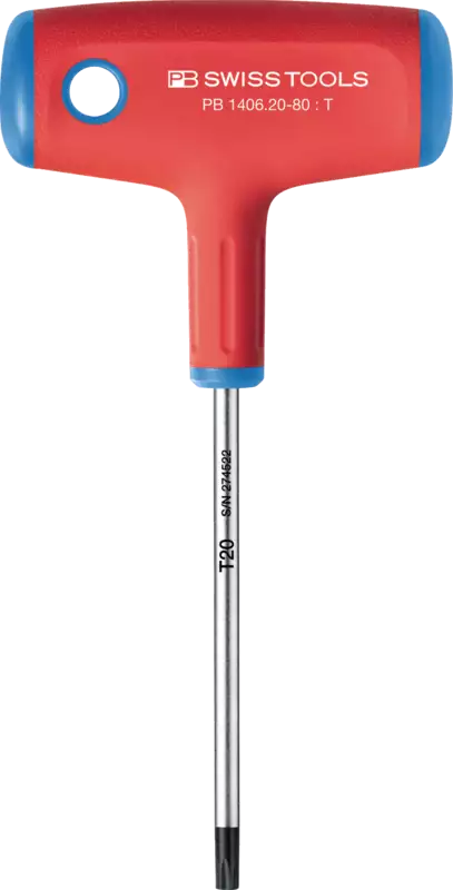PB 1406, für TORX®-Schrauben. Der ergonomische Quergriff liegt perfekt in der Hand, hält das Handgelenk gerade und erlaubt ermüdungsfreies Arbeiten. Präzise, massgenaue Spitze, optimaler Sitz in den Schrauben. Sonderlegierung auf Federstahlbasis, aussergewöhnliche Elastizität bei hoher Härte.