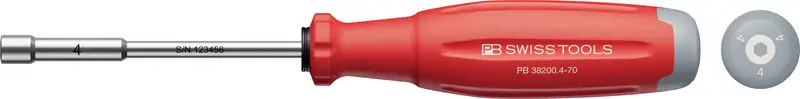 SwissGrip Evo Steckschlüssel-Schraubenzieher für Sechskantschrauben. Mit Sechskantansatz/Schlüsselhilfe ab Schlüsselweite 8 mm. Beständiger Griff für müheloses Arbeiten bei hohen Drehmomenten. Farbcode pro Schraubentyp, schnelle Identifikation.
