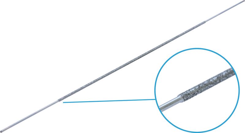 Diamantierte Sägen zum Nachbohren; diese grosszügig mit Diamantpartikeln beschichteten Klaviersaitendrähte werden für eine sehr lange Lebensdauer hergestellt. Besonders geeignet zum Schneiden von Glas, Keramik und Steinen.