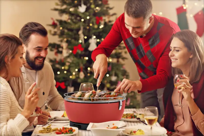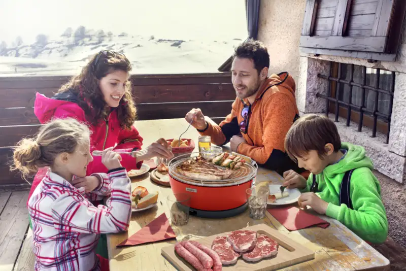 Das Erlebnis einer neuen Art des Grillens: Alle sitzen am Tisch und jeder entscheidet in wenigen Minuten selbst über den Hitzegrad bzw. die Intensität des Garens seiner Portion – alles rauchfrei.