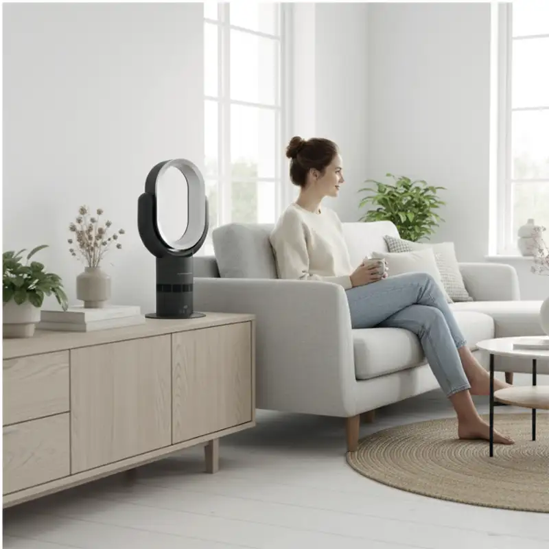 Der Kibernetik BTV61 Bladeless Tisch Ventilator sorgt für eine gleichmässige und angenehme Luftzirkulation ohne sichtbare Rotorblätter. Dank moderner Bladeless Technologie bietet er eine sichere und leise Kühlung für Wohn und Arbeitsräume.
