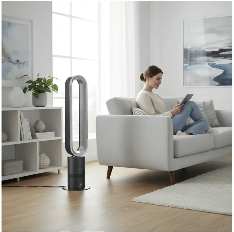 Der Kibernetik BSV97 Bladeless Stand Ventilator sorgt für eine gleichmässige und angenehme Luftzirkulation ohne sichtbare Rotorblätter. Dank moderner Bladeless Technologie bietet er eine sichere und leise Kühlung für Wohn und Arbeitsräume.