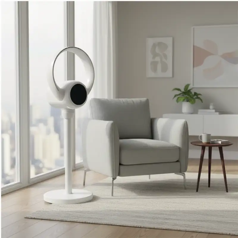Der Kibernetik TSV90 Tisch Standventilator sorgt für eine kraftvolle und gleichmässige Luftzirkulation an warmen Tagen. Dank moderner Bladeless Technologie bietet er eine angenehme, gleichmässige Luftströmung ohne sichtbare Rotorblätter.