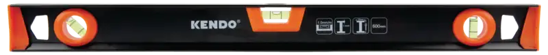 Die KENDO Wasserwaage ist die clevere Wahl für alle, die zuverlässige Messergebnisse zu einem attraktiven Preis suchen – ob auf der Baustelle oder in der Werkstatt. Das Gehäuse besteht aus einem stabilen Aluminium-Doppel-T-Profil mit stossabsorbierenden Gummikanten für extra Schutz. Drei gut ablesbare Libellen ermöglichen präzise Messungen in 180°, 90° und 45° – mit einer Genauigkeit von ±1,0 mm/m. Ideal für horizontale, vertikale und schräge Ausrichtungen.