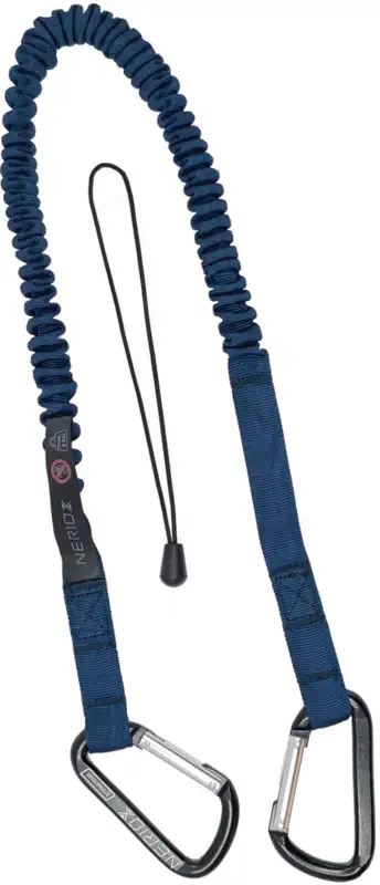 Flexible Werkzeugsicherung für Gerüstbauknarren und anderes Werkzeug. Mit zwei Karabinerhaken und Kevlar Handumreifungsband. Somit ist ein runterfallen der Werkzeuge ausgeschlossen.