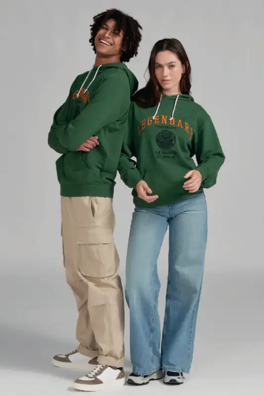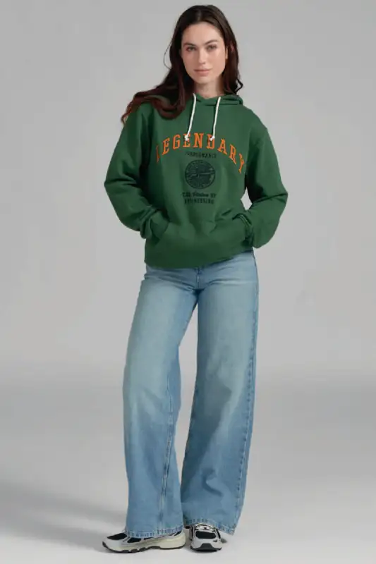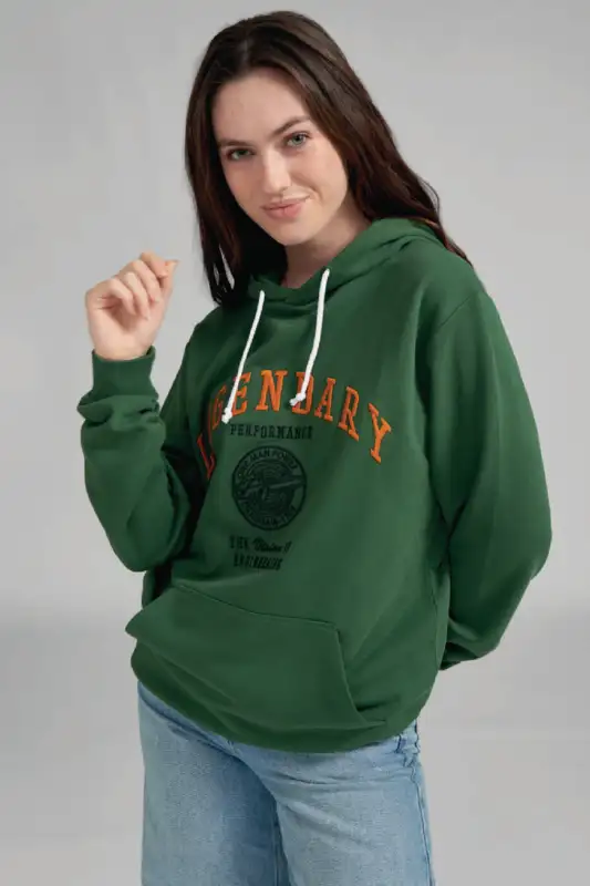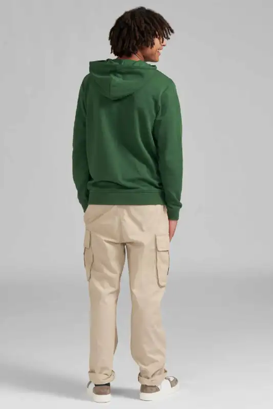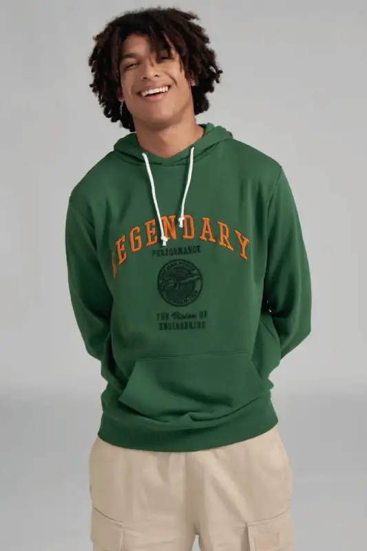 In klassischem Grün gehalten und mit normaler Passform geschnitten, lässt sich der Hoodie vielseitig kombinieren. Ein echtes Highlight ist die grossflächige Stickerei auf der Vorderseite mit zusätzlichen 3D-Elementen, die dem Design Tiefe und Charakter verleihen.