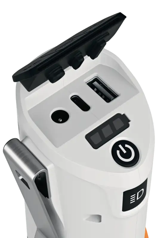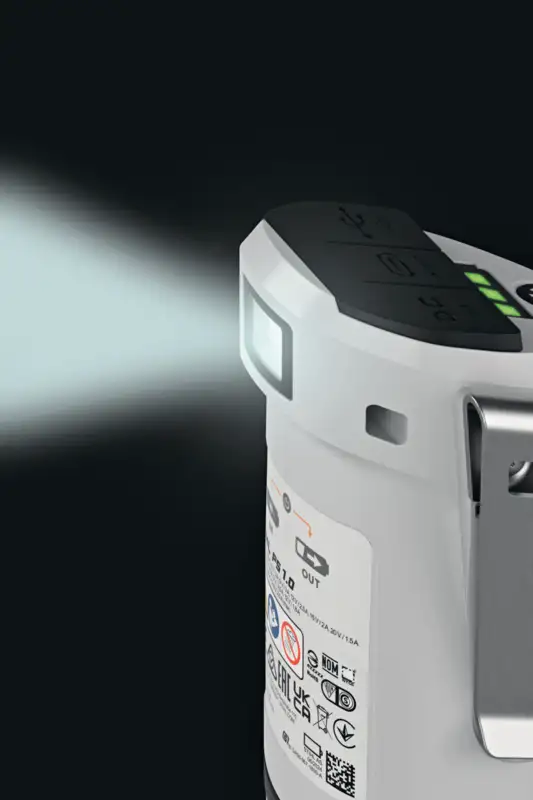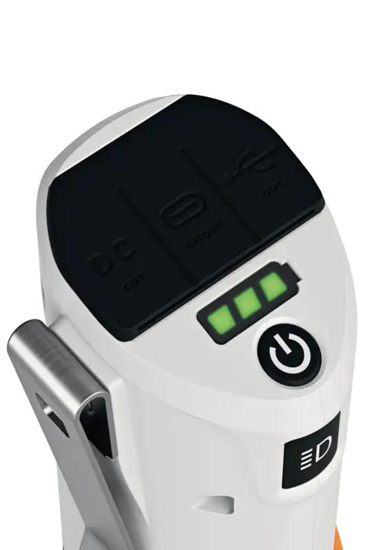 Die PS 1 bietet zuverlässige Stromversorgung unterwegs – ob auf der Baustelle, beim Camping oder bei Outdoor-Aktivitäten. Nutzen Sie den DC-Output, um Heizjacken oder Westen mit Strom zu versorgen, oder laden Sie Ihren STIHL AS Akku direkt vor Ort auf. Dank der integrierten LED-Taschenlampe behalten Sie auch bei Dunkelheit den Überblick.