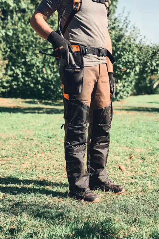 Dank des STIHL Clip-Systems mit doppeltem Metall-Clip lässt sich das Holster schnell und bequem am Hüftgurt oder Gürtel des STIHL ADVANCE X-Flex Systems befestigen. Alternativ kann es auch problemlos an einem normalen Gürtel angebracht werden.