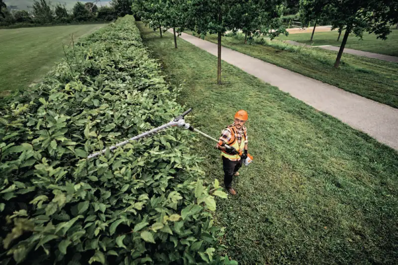 Der STIHL HLA 150 B ist ein leistungsstarker Akku-Heckenschneider für die professionelle Heckenpflege in der Garten- und Landschaftspflege. Dank des werkzeuglos verstellbaren Teleskopschafts erreichen Sie auch sehr hohe Hecken und Sträucher problemlos. Das Gerät kombiniert hohe Leistung, geringes Gewicht und eine besonders leise Arbeitsweise, sodass Einsätze auch in lärmsensiblen Bereichen möglich sind.