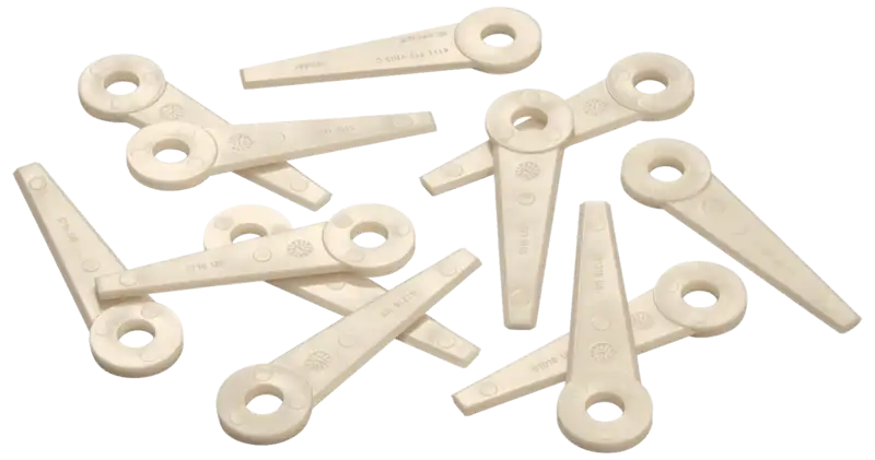 Kunststoff-Messer für die PolyCut Mähköpfe. Diese Ersatzmesser ermöglichen Ihnen das effiziente Schneiden von mittelhohem Gras und die präzise Pflege von Rasenkanten. Der Austausch der Schneidwerkzeuge bei Motorsensen ist besonders schnell und einfach, ganz ohne zusätzliches Werkzeug.