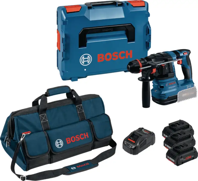 - Lieferumfang GBH 18V-22 X, L-Boxx, 3x 4 Ah Akkus, Ladegerät GAL 1880 CV, Toolbag