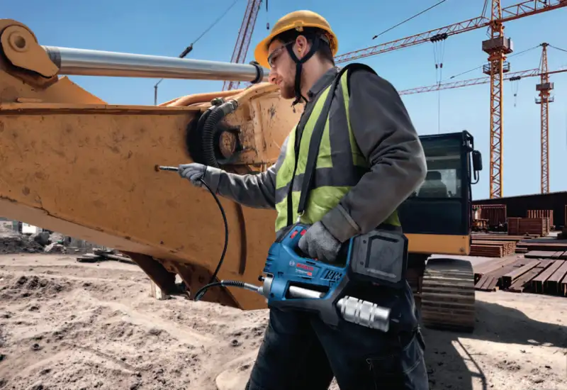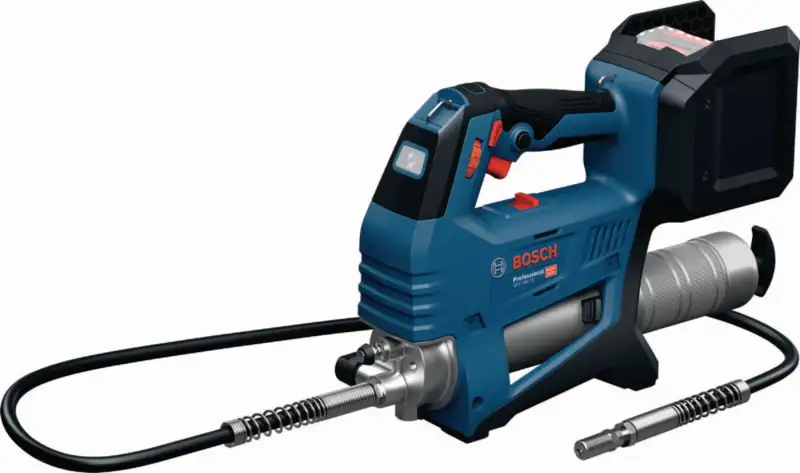 Die Akku-Fettpresse GFP 18V-10 von BOSCH kombiniert hohe Leistung mit präziser Anwendung. Ausgestattet mit einem kraftvollen 18V Akkusystem und einem Hochdruck-Pumpmechanismus liefert sie einen konstanten Druck. Damit ist sie perfekt geeignet für den professionellen Einsatz in Werkstatt, Industrie, Landwirtschaft und auf der Baustelle.