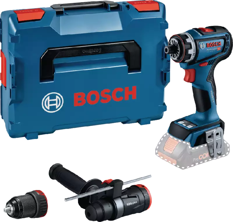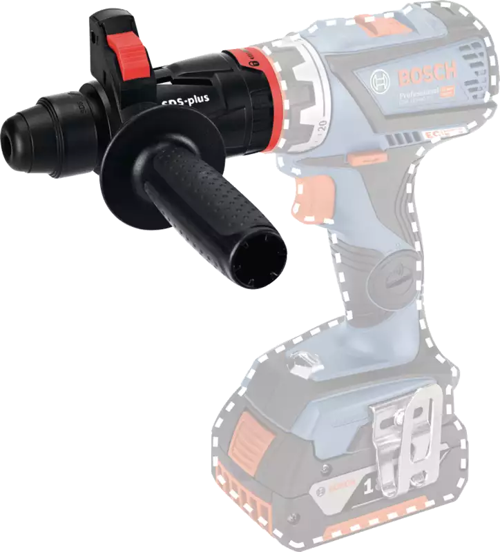 - Lieferumfang GSR 18V-90 FC, Hammeraufsatz SDS plus einschl. Zusatzgriff, L-Boxx, Tiefenmass
