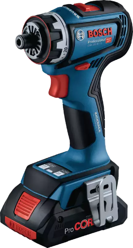 Der Akku-Bohrschrauber GSR 18V-90 FC von BOSCH ist die optimale Wahl für professionelle Anwender, die Leistung und Vielseitigkeit in einem Modell erwarten. Ausgestattet mit einem leistungsstarken Motor und der innovativen FlexiClick-Technologie ist er ein wahres Multitalent für verschiedenste Anwendungen. Die FlexiClick-Technologie ermöglicht es, den Bohrschrauber in Sekundenschnelle zu einem vielseitigen Werkzeug umzurüsten. Der im Lieferumfang enthaltene Hammeraufsatz verwandelt das Gerät in einen Bohrhammer und macht es damit zum einzigen 18V Bohrschrauber, der müheloses Hammerbohren in Beton bis zu Ø10 mm ermöglicht.