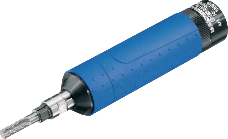 Werkzeugmacher-Ausführung mit Drehventil für längere Arbeitsphasen, für Feinbearbeitung, zum Schlichten, Entgraten usw. Hochtourig, leicht, handlich, leise und kälteisoliert. Hohe Rundlaufgenauigkeit, Abluft nach hinten mit integrierter Schalldämpfung. Muss mit geölter Luft betrieben werden. Lieferung inkl. Schlaucheinheit und Stecknippel Euronorm (Cejn 320).
