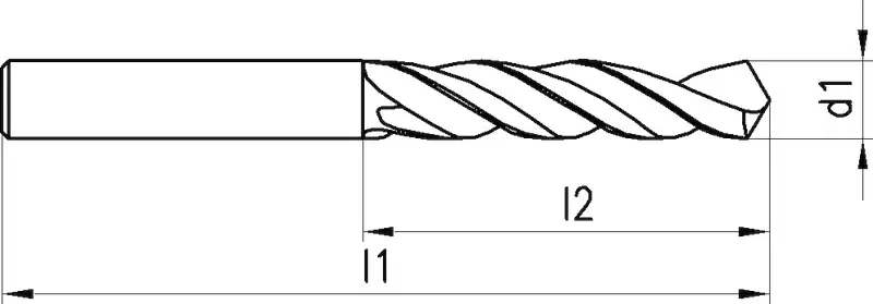 HSS-Co, TiN-Beschichtung, Spitzenwinkel 118°, Schneidentoleranz h8, Zylindrisch (ohne Fläche, HA), DIN 338, Bohrtiefe 5xD, Anzahl Zähne 2