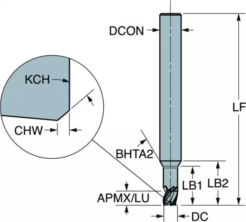 VHM, Ø 2-20 mm, AlCrN-Beschichtung, Drallwinkel 38°, Schneidentoleranz d8, Weldon (mit Fläche, HB)/Zylindrisch (ohne Fläche, HA), Schafttoleranz h6, extrakurz, Zentrumschnitt, mit Schutzfase, Anzahl Zähne 3, DIN 6535