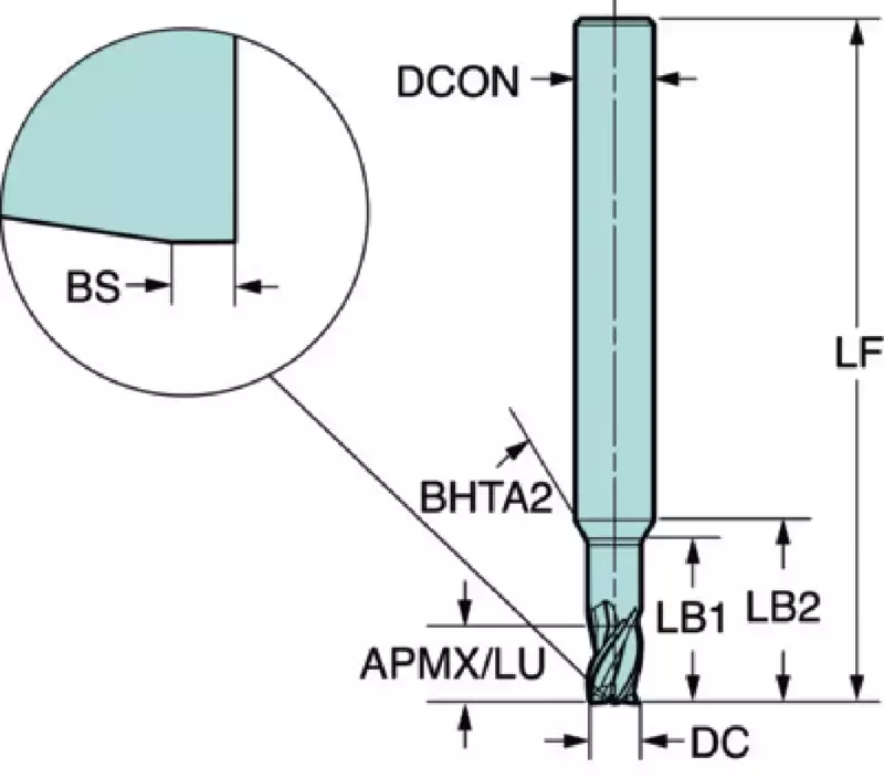VHM, Ø 2-25 mm, Drallwinkel 35°, Schneidentoleranz h10, Weldon (mit Fläche, HB)/Zylindrisch (ohne Fläche, HA), Schafttoleranz h6, extrakurz, Zentrumschnitt, Scharfe Eckenausführung, Anzahl Zähne 3, DIN 6535