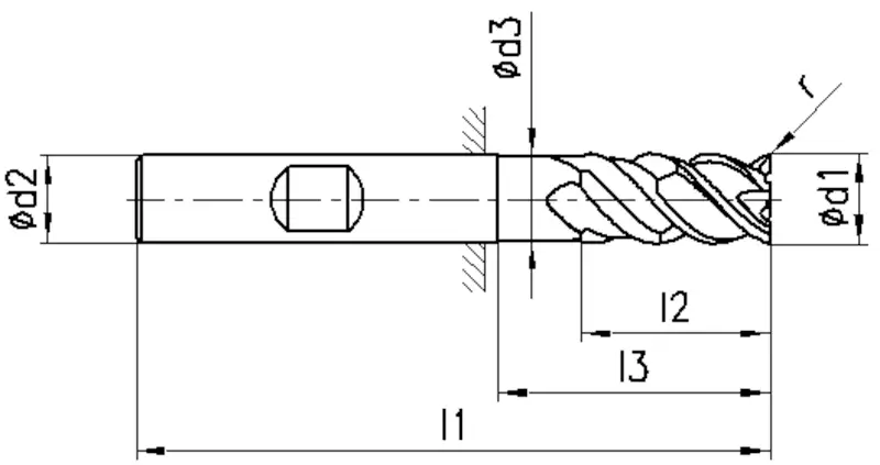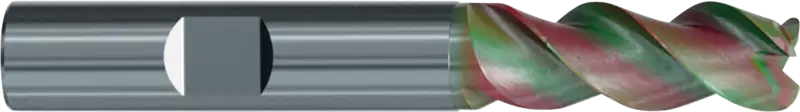 2547K, Typ W, VHM, Ø 6-20 mm, beschichtet, ungleicher Drallwinkel 38/40°, Schneidentoleranz h10, Weldon (mit Fläche, HB), Schafttoleranz h6, lang, Zentrumschnitt, mit Eckenradius, Anzahl Zähne 3, DIN 6527
