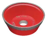 Borazon-Schleifscheibe in Kunstharzbindung zum Schleifen von HSS (Nass- und Trockenschliff), Schnittgeschwindigkeit 25-32 m/s.