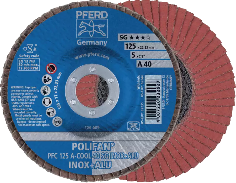 PFERD Fächerschleifscheibe  POLIFAN Ø 115, K 60 (PFC 115 Z60 PSF STEELOX) - toolster.ch