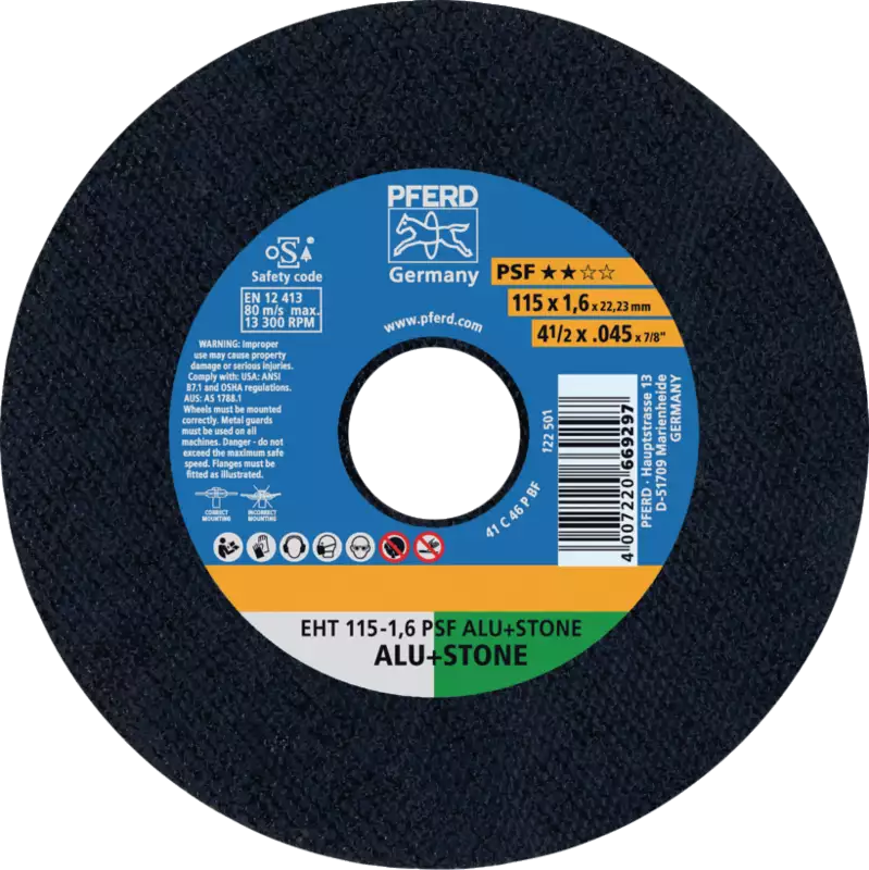 Gerade Ausführung EHT (Form 41), Schleifmittel Siliciumcarbid C, für Aluminium/NE-Metalle, Titan, Stein, Beton, Fliesen, Duroplaste (GFK, CFK) und Gusseisen. Zum Trennen von Blechen, Profilen und Vollmaterial. Leistungsstarkes Werkzeug für kühles Trennen mit hoher Trennleistung und guter Standzeit.