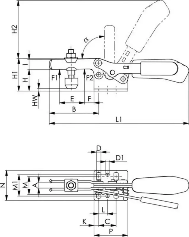 6830S, verzinkt und passiviert. Niete aus nicht rostendem Stahl, die in einsatzgehärteten Lagerbuchsen laufen. Lagerstellen gefettet. Ergonomischer, ölbeständiger Handgriff mit großer Handauflage und weicher Komponente. Verliersicherung für die Andrückschraube am Spannarm-Ende.