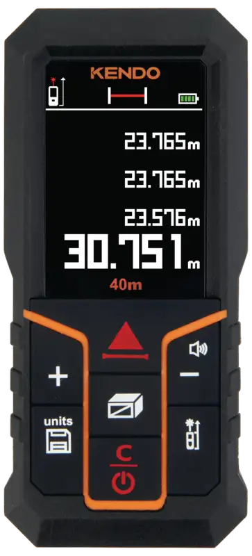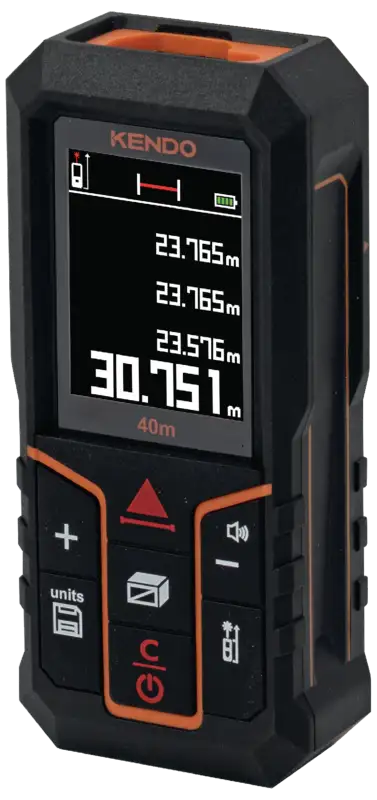 Der KENDO Akku-Laser-Entfernungsmesser ist ein leistungsstarkes, kompaktes Messgerät für präzise Innen- und Aussenmessungen. Mit seiner Reichweite von bis zu 40 m, einer Genauigkeit von ±2 mm und zahlreichen Messmodi ist er ideal für Handwerker, Innenausbauer, Monteure und ambitionierte Heimwerker.