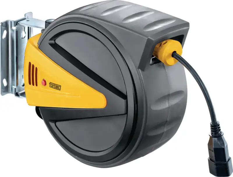 Die Kabelrückzugrolle von fortec® sorgt für Ordnung, Sicherheit und effizientes Arbeiten. Dank des robusten Kunststoffgehäuses und des zuverlässigen Rückzugsmechanismus eignet sie sich ideal für den täglichen Einsatz in Werkstatt und Industrie. Das Kabel lässt sich stufenlos ausziehen und arretiert sicher in der gewünschten Länge. Nach Gebrauch wird es automatisch und kontrolliert wieder eingezogen. Die kompakte Bauweise ermöglicht eine platzsparende Montage an Wand oder Decke.