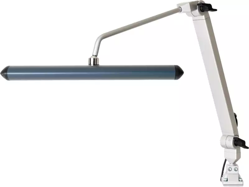 Durch ihr Design mit verstellbarem Kugelgelenk am Leuchtenkopf bietet sie eine anpassungsfähige Position der Beleuchtung im Arbeitsbereich.