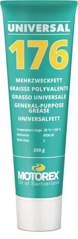 Als Mehrzweckfett in einem breiten Anwendungsgebiet einsetzbar. Bringt gute Leistungen in allen Gleit- und Wälzlagern. Verwendbar in Werkstätten, Landwirtschaft, Industrie, Transport und Bau.Das Fett 176 GP ist ein lithiumverseiftes Fett auf Mineraloelbasis. Alterungsbeständig, stabil gegenüber Wasser, schwachen Säuren und alkalischen Lösungen.