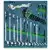 Dans une garniture en mousse, bicolore bleu/vert