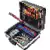 Le format King Size sur roulettes. Coque de coffret robuste, transportable en avion, en X-ABS très résistant, noir, avec cadre en aluminium double, quadruple ouverture télescopique, extra-large, pour tirer ou pousser le coffret ; roulettes caoutchoutées intégrées au coffret, empattement large, position stable. Serrures à vérin de basculement, charnières avec dispositif de blocage du couvercle du coffret, panneaux à outils solides (sans outils).