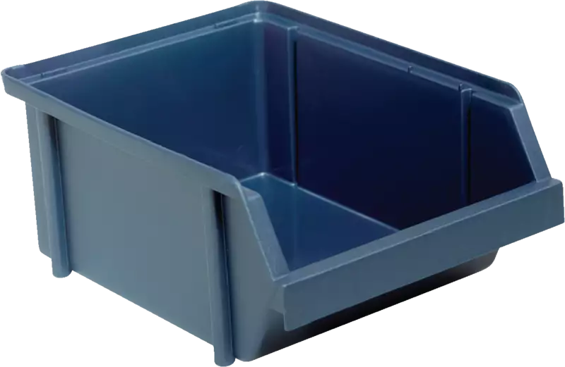 En polypropylène haute qualité, bleu, incassable, résistant à des températures de -20 à +90°C, résistant aux acides, aux bases et à l'huile, toutes les tailles sont de même largeur et peuvent ainsi être empilées.