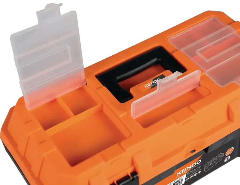 La grande caisse à outils KENDO offre un grand espace de rangement, une répartition bien pensée des compartiments et une grande stabilité. Elle est idéale pour tous ceux qui souhaitent ranger de manière ordonnée et à portée de main des outils, des accessoires ou même du matériel de pêche volumineux. Fabriquée en plastique ABS résistant aux chocs et aux cassures, la caisse résiste sans problème aux utilisations exigeantes dans l'atelier, le garage, sur le chantier ou en déplacement.