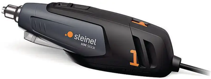 La soufflerie d'air chaud HM Stick de STEINEL est une soufflerie d'air chaud de haute précision au format tige pour les applications nécessitant une chaleur précise et un contrôle maximal. Qu'il s'agisse de travaux sur des gaines thermo-rétractables, de réparations ciblées sur des composants électroniques ou de l'usinage de matières plastiques, la HM Stick séduit par son format compact, ses performances exceptionnelles et sa disponibilité immédiate. Le boîtier en forme de tige offre la même prise en main qu'un manche d'outil et permet un travail particulièrement précis dans les espaces restreints. Grâce à sa base plate, la HM Stick peut être posée sur une table en toute sécurité et facilement. Cela le rend particulièrement pratique pour les opérations répétitives ou pour le ranger temporairement en cours d'utilisation.