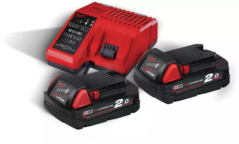 - Contenu de la livraison 2 packs de batteries 2.0 Ah M18 B2 Li-Ion, chargeur M12-18 C