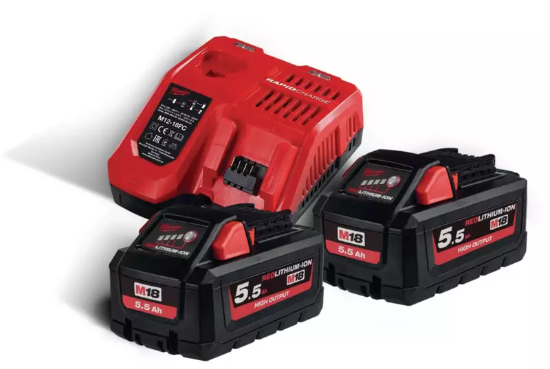 - Contenu de la livraison 2 packs de batteries M18 HB5.5 High-Output Li-Ion de 5.5 Ah, 1 pack de batteries M12 B3 Li-Ion de 3.0 Ah, chargeur M12-18 FC
