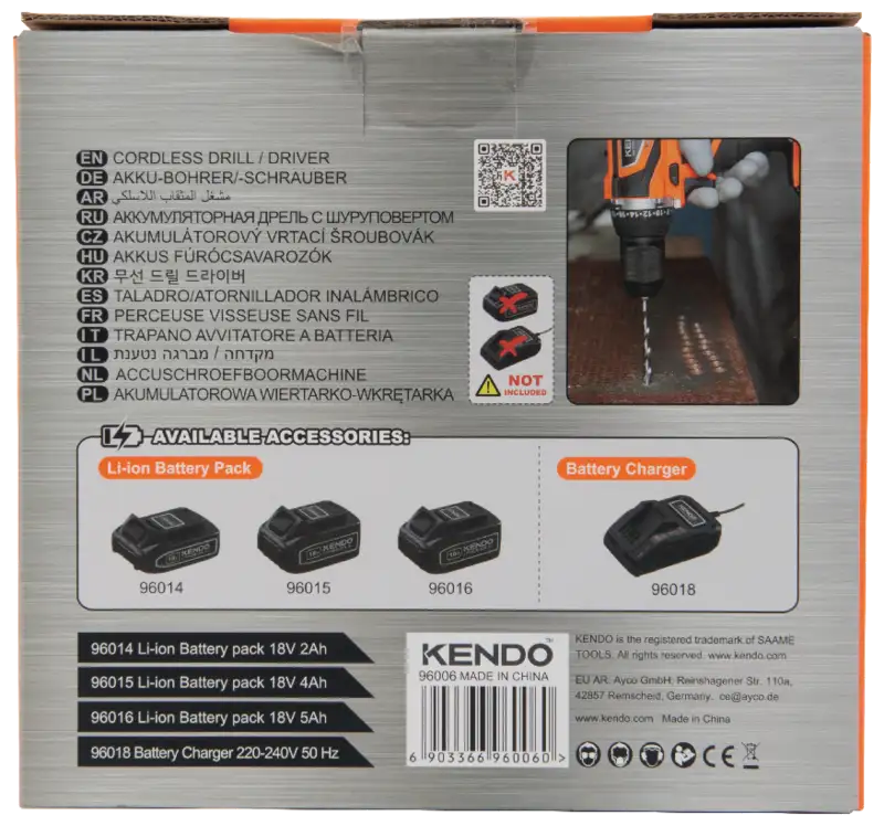 KENDO Perceuse-visseuse sans fil 96006, 18 V Li-Ion