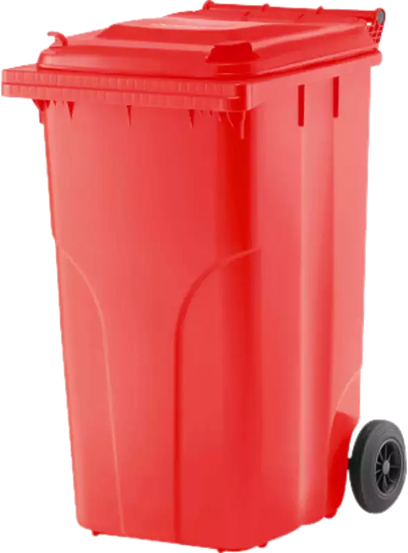 en polyéthylène, appropriées pour l'usage domestique ou ordures compostables, légeres et pratiques, 2 roues diamètre 200mm. Résistantes à la chaleur et au gel, elles se vident par les lèves à peigne.