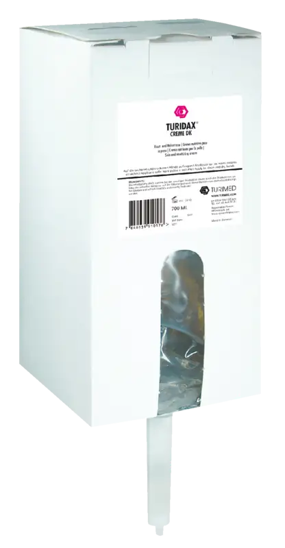 Appliquer la Crème Turidax avec parcimonie pour les soins individuels de la peau ou après chaque lavage des mains.