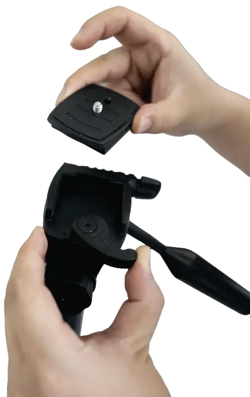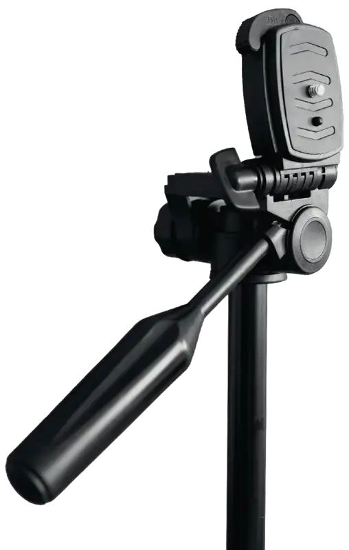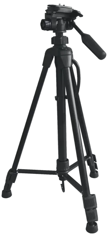 La hauteur est réglable de 0,6 m à 1,5 m, ce qui permet un travail précis dans différentes situations. Le trépied est équipé d'une plaque à fixation rapide avec filetage photo standard 1/4"-20 UNC, la connexion internationale pour les appareils photo, les niveleurs laser et les accessoires. De plus, la plaque dispose d'une vis vidéo intégrée qui empêche de manière fiable la rotation des appareils photo et des appareils, ce qui est particulièrement pratique pour les enregistrements vidéo ou lors de l'utilisation d'appareils plus lourds. Pour les prises de vue en format portrait, la tête du trépied peut être facilement inclinée latéralement, ce qui vous permet de passer facilement du format paysage au format portrait.