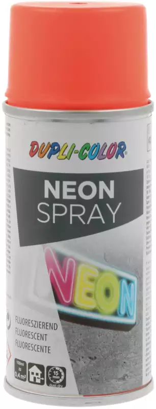 Spray néon DUPLI-COLOR, coloris fluorescents pour les travaux de décoration professionnels, pour la conception de vitrines, les salons, les aménagements de magasin, les décorations extérieures, les objets de démonstration et bien plus encore. Idéal pour le métal, le bois, le verre, la céramique, le polystyrène, l'éternit, le béton, la pierre, le papier, le carton, les plastiques pouvant être peints, etc.