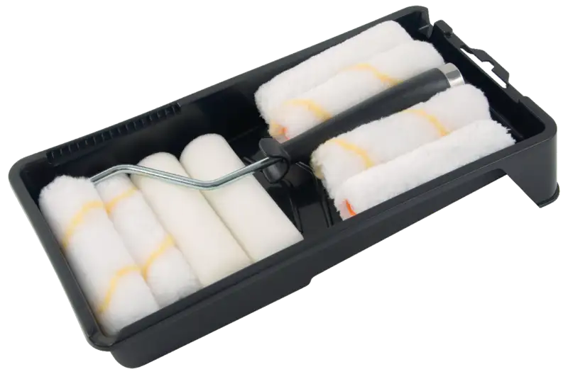 Le mini-set de rouleaux à peinture KENDO de 10 pièces est idéal pour les travaux de peinture sur des surfaces petites et moyennes. Qu'il s'agisse de meubles, de portes, de bords, de radiateurs ou de travaux minutieux, les différents types de rouleaux vous permettent d'obtenir des résultats nets et uniformes avec toutes les peintures et tous les vernis courants. Le kit comprend un bac à peinture, un manche à rouleau adapté et trois types de rouleaux à peinture.